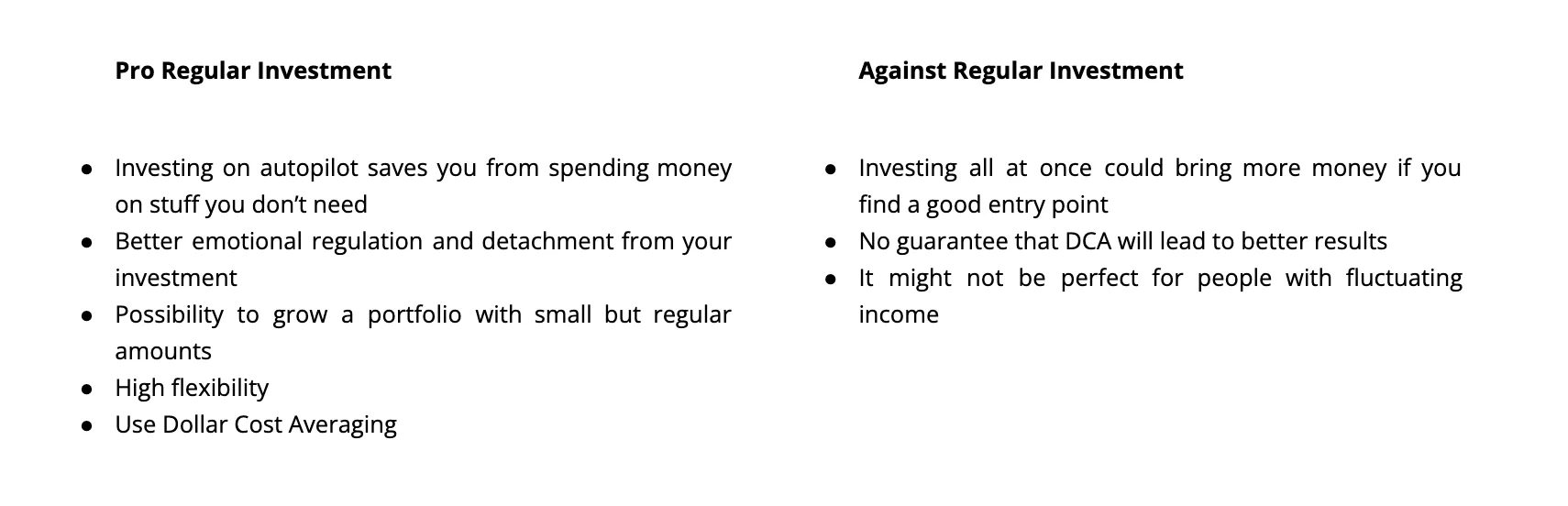 More info on the pros and cons of Dollar Cost Averaging can be found in our dedicated article on this topic.